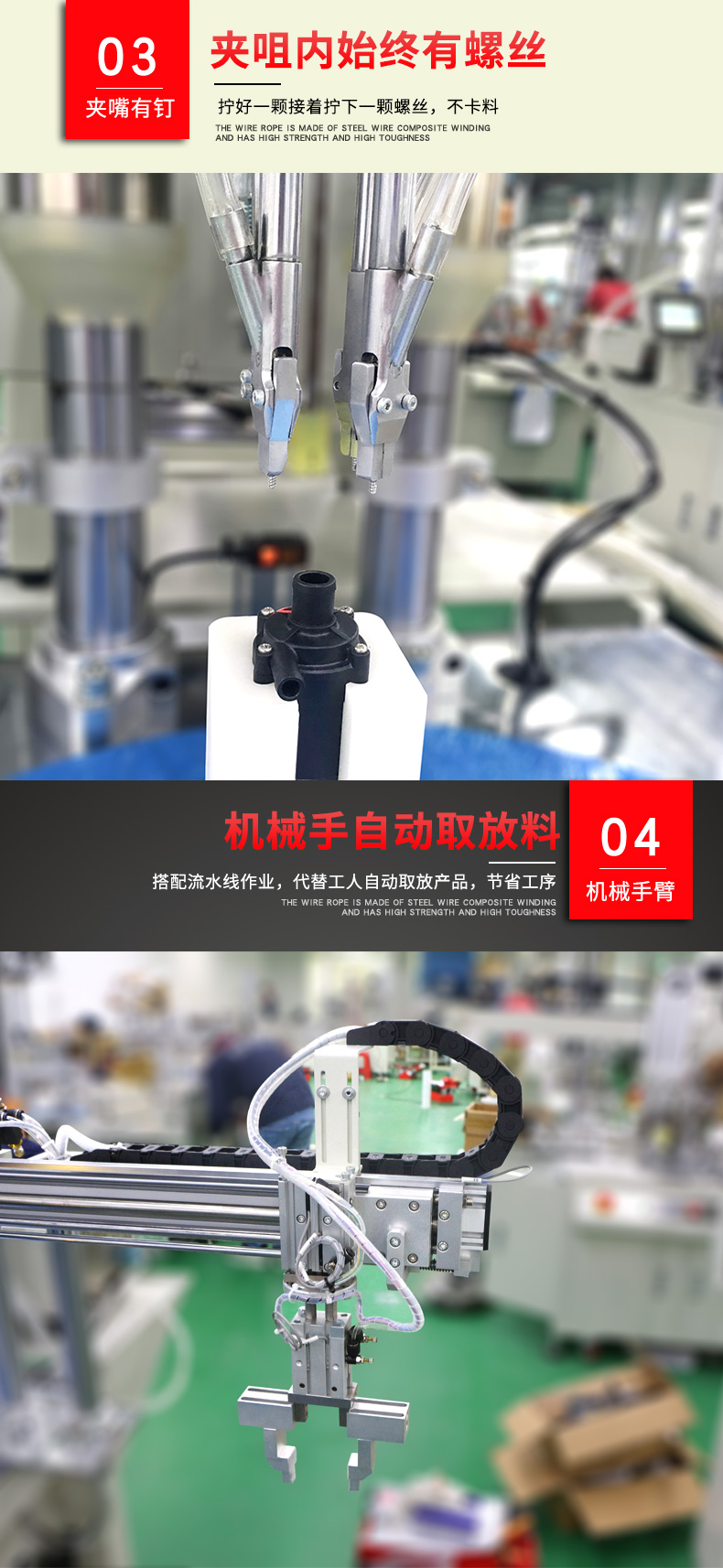 - 產品簡介: 該款自動打螺絲機,可以加散熱風扇連同墊片一起打螺絲,節省企業擰螺絲的時間,快速提升了產品生產效率。